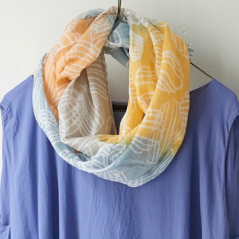 肌あたりの良い柔らかなガーゼを注染で染め上げたスカーフ。暑い季節の汗取り、首回りの日除けにおすすめです。