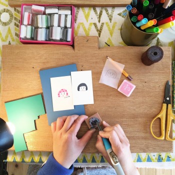 まるでマンガのひとコマみたいにユニークで、使う人も見る人も思わずにっこりしてしまう様な、お名前はんこをその場で作成します。