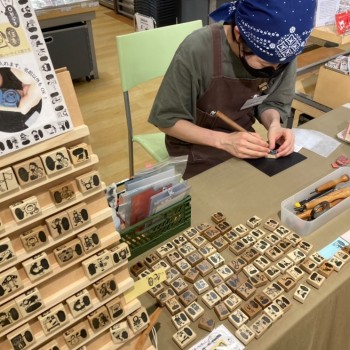 ゴム版と彫刻刀を使い、その場ではんこを制作いたします。