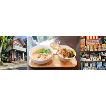 参道の鎮座する明治神宮から移設された大鳥居は台湾阿里山檜で作られたことから縁を感じ、 約80年前のレシピを再現した「魯肉飯」「麺線」など台湾のソウルフードと小吃を中心に食文化を日本の皆様にお伝えし、台湾の魅力をPR、友好を深めたいという願いで創業。