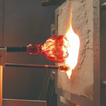溶けた硝子に息を吹き込みながら、食器や花器を製作します。模様を入れたり泡を入れることもできます。