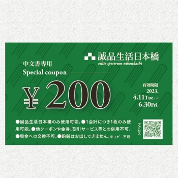 ※使用条件:誠品生活日本橋のみ。1会計につき1枚利用可能。