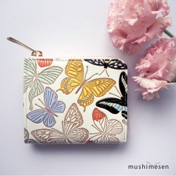 蝶と蛾を描きデザインした文庫革を使用したミニ財布。