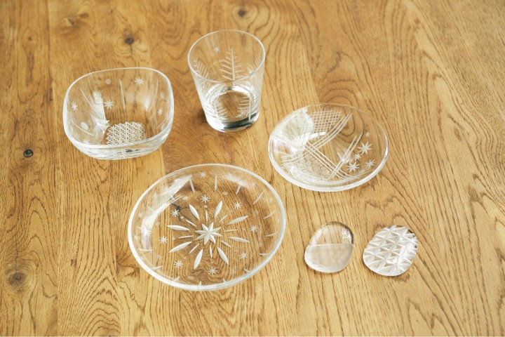 ダイヤモンドが練りこまれた金属のホイールを回転させて硝子を削り、自由に文様を描くワークショップです。