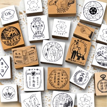 大正・昭和レトロスタンプやオリジナル日付印、デザイナーコラボスタンプ、アーティストとのコラボスタンプ、オシャレなお仕事スタンプなど、多数の商品を製造部がハンドメイドで一点ずつ丁寧にお作りしております。