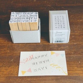 朴訥でシンプルなオスコラボの定番文字はんこ「ジムスタンプ」が、一文字づつのアルファベットスタンプボックスセットになりました。