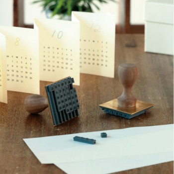 12個のパーツを並び替えることで、どんな月のカレンダーでも作ることができるハンコ。