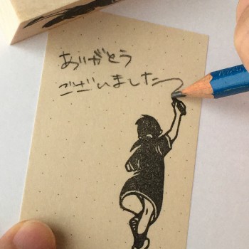 手書き文字の末尾を絵の筆に繋げると絵描きの彼が書いている様になる挿絵はんこです。