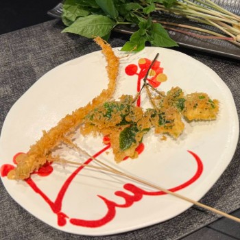 西麻布の人気店「うまつ」による「高麗人参スプラウトの串揚げ」を提供。揚げたて・作りたての驚きの美味しさを体験いただけます。