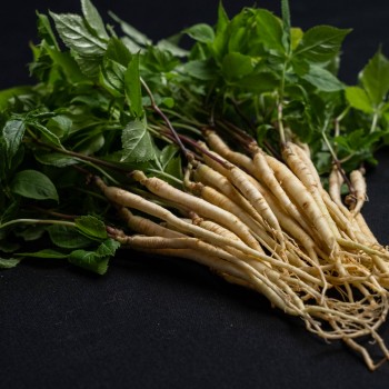 最大の特徴は、根だけでなく葉や茎まで丸ごと生で食べられる点。独自の栽培法により、有用成分サポニンを豊富に含みつつ、特有の苦味を抑えた瑞々しい味わいを実現しました。高麗人参蒸し生姜湯や醤油・お酢そしてペースト等の加工品は、日々の活力を支える次世代の健康食材として、全国から高い注目を集めています。