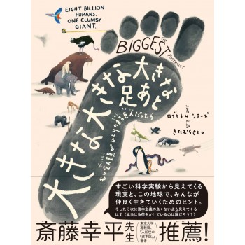 地球上の全てを、それぞれ種類ごとに巨大な1個体に纏めて、比べる思考実験の絵本。人類よりも虎は小さく、ウイルスは何倍も大きい。地球につけた自分の大きな足跡を見て何を思い、地球環境や他の生物とどう関わるのか。深く考えさせられる1冊。