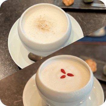 ①ココナッツの濃厚な香りにミルクを組み合わせると、焙煎した台湾産の烏龍茶が引き立ちます。