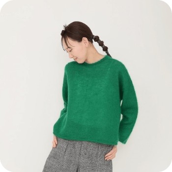モヘア特有の空気を含んだような柔らかさと軽さが特徴のニット。