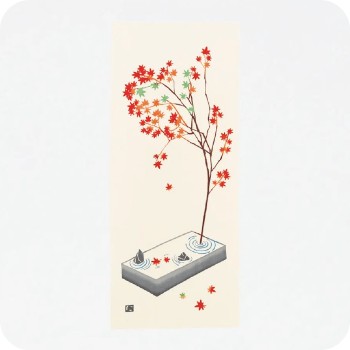 趣のある庭園の中に、色づく紅葉を生けました。小さな世界の中に秋を感じさせる一枚です。