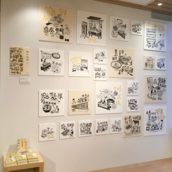 なお、『味の台湾』イラストパネル展も絶賛開催中です。張宗舜・陳妮均両氏による、賑やかな台湾料理の風景が並びます。ぜひゆっくりとご鑑賞ください。
