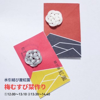 水引でむすんだ梅むすびを月に見立てて栞に仕上げます