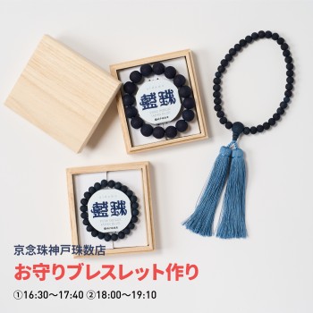京都より届いた「月夜」にちなんだ珠数玉を用いたお守りブレスレット作り