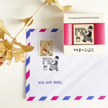 切手のこびと」は切手と組み合わせて使えるスタンプです。切手の周りに物語を沿えて送ることができます。マスキングテープやシール、手書きのイラストと組み合わせてもお楽しみいただけます。ひとつひとつがオリジナルのパッケージに入っていますので、ちょっとしたギフトにもオススメです!
