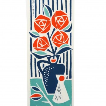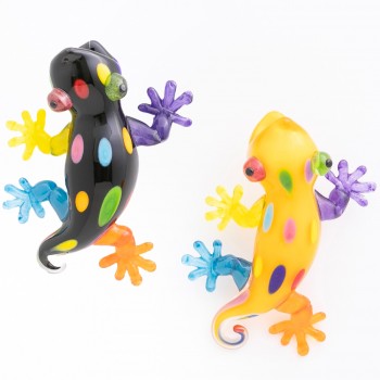 鮮やかなカラーが特徴の作品で、壁掛にして一輪挿しとしても使用できるガラスのオブジェです。