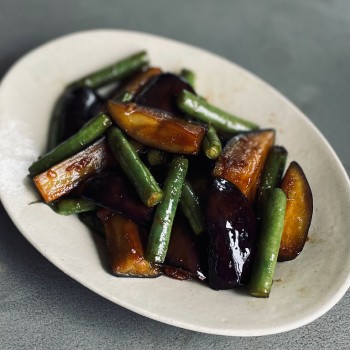 滋味深い、茄子といんげんのXO醬ビネガー炒め