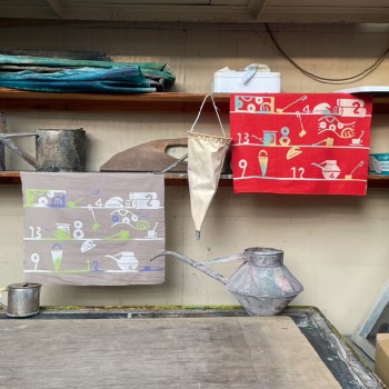 今年のノベルティは、工場の棚に並んでる道具を中心にデザインしました。