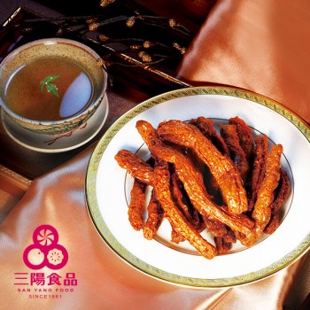 三陽食品の「素蹄筋(そていきん)」は、おつまみになる「植物性のお肉」。つまりベジタリアンジャーキーです。台湾には人口の10%ほどの素食者(ベジタリアン)がいるため、このような「動物性ではない肉」の食品が普及しています。