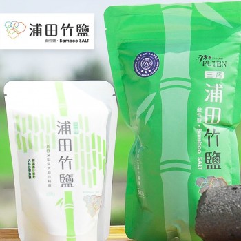 浦田竹塩は、台湾の高山に特有の桂竹を厳選し、海塩をぎっしり詰めてから、溶岩の温度(約1000度)に近い高温で三日三晩焼きます。そうすることで、ナトリウム量が通常の食塩の1/3になるため、塩分による体への負担も軽減されます。