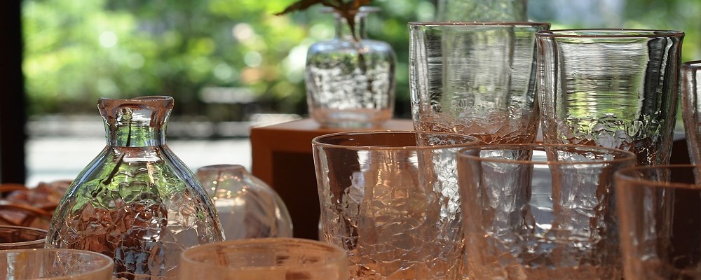 グラス(丸型、上広がり、ストレート)、小皿、小鉢、花器(丸型、なみだ型)、金魚鉢