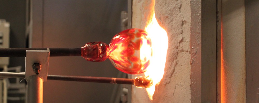 溶けた硝子に息を吹き込みながら、食器や花器を制作するワークショップです。お好みの色を選んで模様を入れることや、泡を入れることも出来ます。