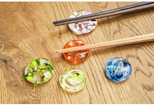 どろどろに溶けた硝子を使ってお箸置きを作るワークショップです。自由に色を選んで模様をつけることも出来ます。短時間の作業なのでお急ぎの方にもおすすめです。