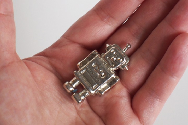 あらかじめ用意されたシリコーン型(ロボ、カエル、枝豆など)に、手鍋で「錫(すず)」を溶かして流し込みます。冷まして磨けば完成。 完成品はその場でお持ち帰りいただけます。